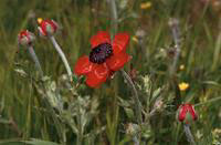 聖地にアネモネと前後して咲き出すラナンキュラスも同様に赤い可愛らしい花である。アネモネの花は中央が黒く、その周りが白っぽくなっていること、蕚がないこと(実際は花冠と蕚の区別がないのであるが)でラナンキュラスと区別できる。