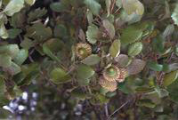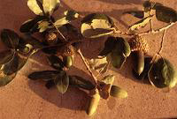 セイチガシ Quercus calliprinos(イスラエルではこのように言われているが、HepperはQ.cocciferaとしている)はごく普通の常緑の低木で、冬から早春にかけてはこの樫だけが葉がある。葉は卵形から長楕円形で比較的小さく、皮のような光沢がある。葉の大きさは他の2種よりも小さく、2~4x1~1.5cm位である。葉の縁は歯状で少し切れ込みが深く、葉の先はとげのように尖っている。通常は根元から枝分かれしている低木であるが、時には幹も太くなり、丈も高くなる。常緑であるが、春先に新しい葉が出てくると落葉する。花は3~4月に開花し、果実は12月頃に熟す。沢山の雄花を尾状花序につけ、まばらに上に穂状花序についている雌花の下に垂れ下がっている。両花とも目立たないが、風で受粉する。堅果は他の2種よりも小さく、総苞は図のようになっている。聖書に出てくる樫は力,長命、誇り、堂々たる様子のシンボルのように述べられているところではタボルガシQercus ithaburensis(Q.macrolepisまたはQ.aegilops)のように考えられる。しかしセイチガシも所によってはかなり大きくなり、しかも常緑であるので、墓や礼拝の対象としても使われる。その良い例がヘブロンにある樫の木である。アブラハムはマムレに樫を植えた。今でもヘブロンの町はずれのギリシャ正教の教会の庭にセイチガシの大木が保存されていて、アブラハムの樫の木と呼ばれている。