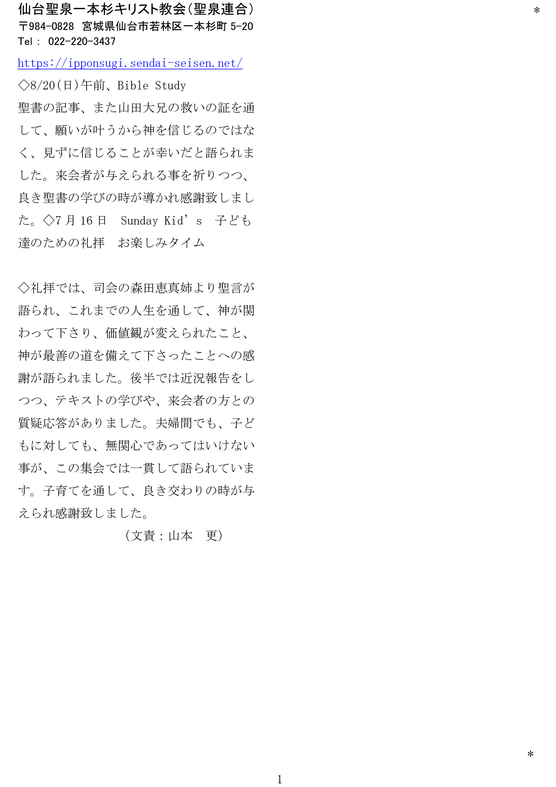 — 仙台聖泉一本杉キリスト教会 —